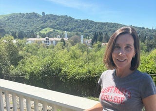 I’d seriously considered applying to graduate school when we moved to our tiny town eight years earlier. Getting an MFA in writing was something I’d thought about for years, since my late twenties. But marriage, career, kids, money, and probably a lack of confidence, had diverted me from that path. Now the idea was palpably within reach. Saint Mary’s MFA program had a good reputation, and it was right there, a five-minute walk from the house. From our backyard, I could see the white stucco walls and red clay tile roofs of the Mission-styled buildings on campus. I could hear the bells chime in the chapel tower on the hour throughout the day. But when we arrived in northern California in 2005—a big move from Chicago where I’d lived for 20 years—with two ten-year-olds, two cats, two birds, a new puppy, and a husband with a busy job—I felt we all needed time to settle in. The family’s needs resonated louder than the church bells that were calling to me.